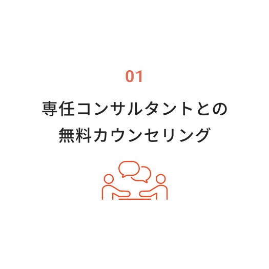 履歴書・職務経歴書をご登録後、専任コンサルタントが無料でカウンセリングを実施します。これまでのキャリア、今後のキャリアの展望やお悩みなど、どんなことでもご相談ください。丁寧にヒアリングし、ご希望に沿った求人をご紹介します。